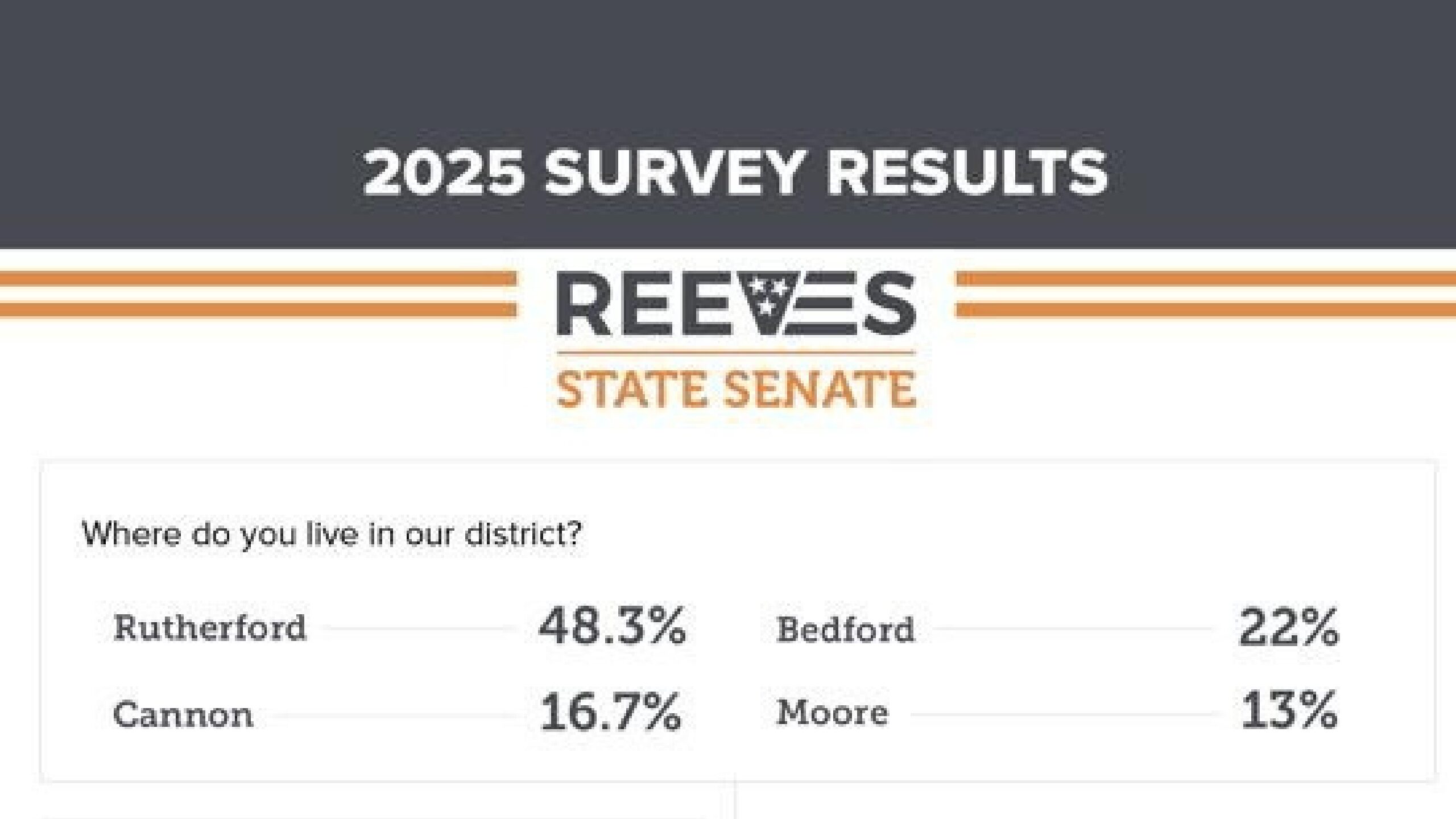 Thank you for taking the time to fill out the constituent survey I sent out. I never want to forget the promise I made to the people of Bedford, Lincoln, Marshall, Moore, and Rutherford Counties to always be your voice in Nashville. I have read your answers, and the full results are included via the link…